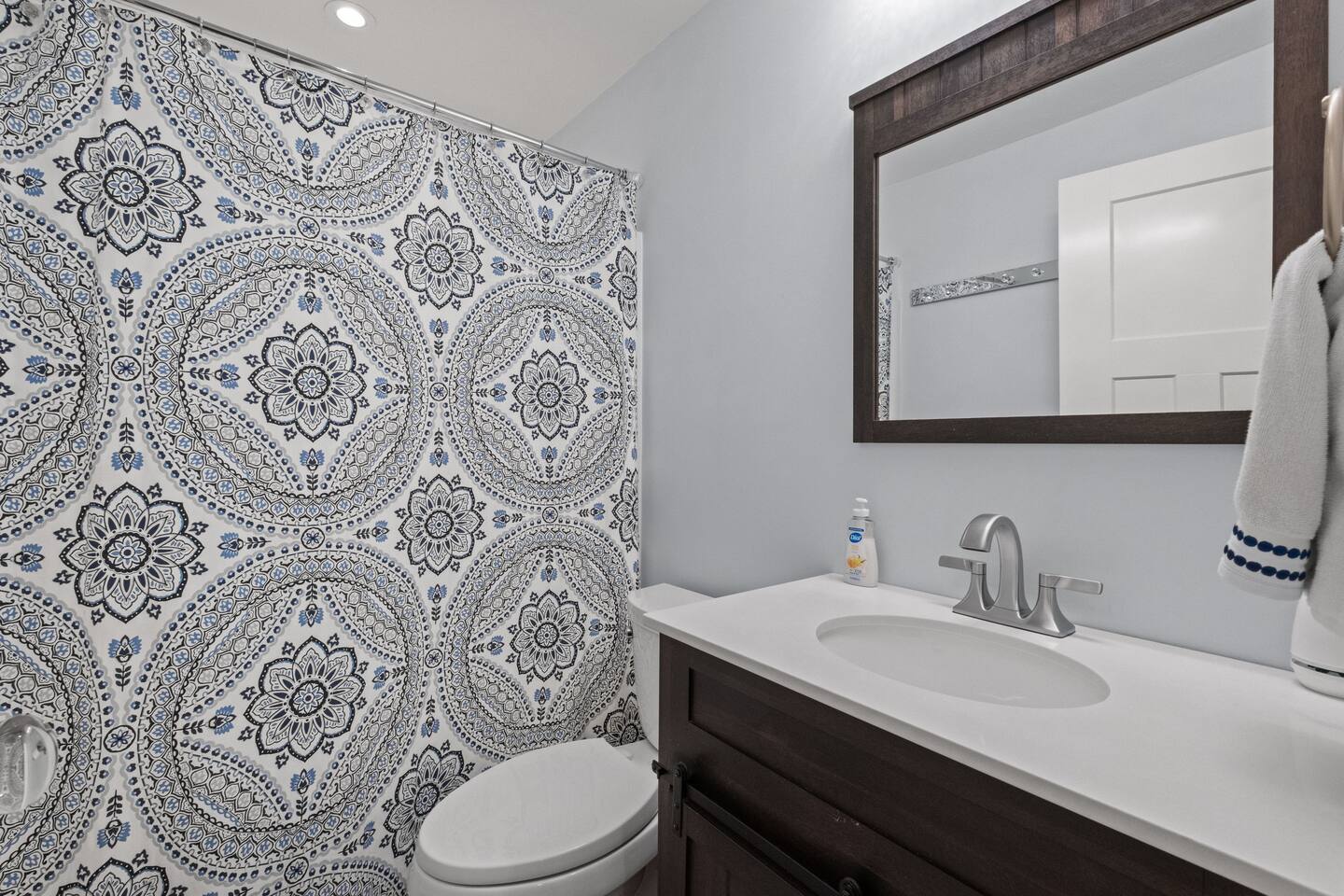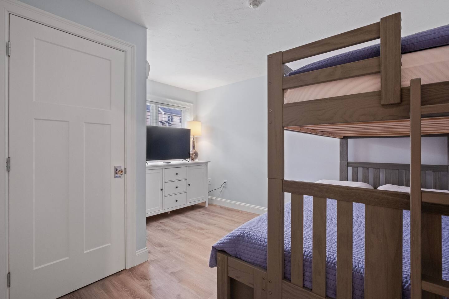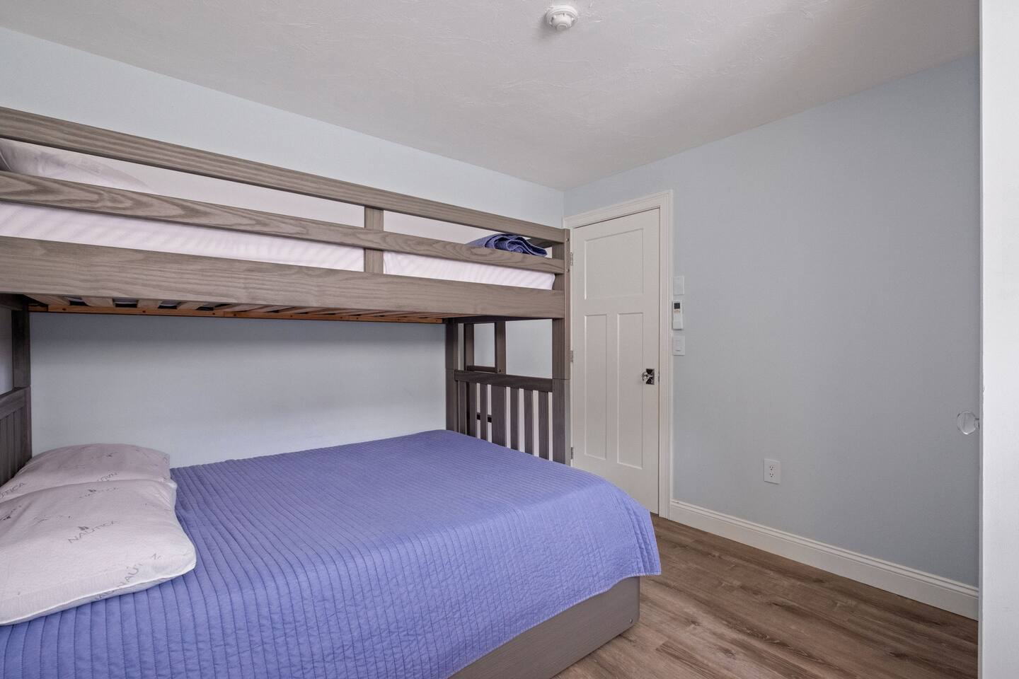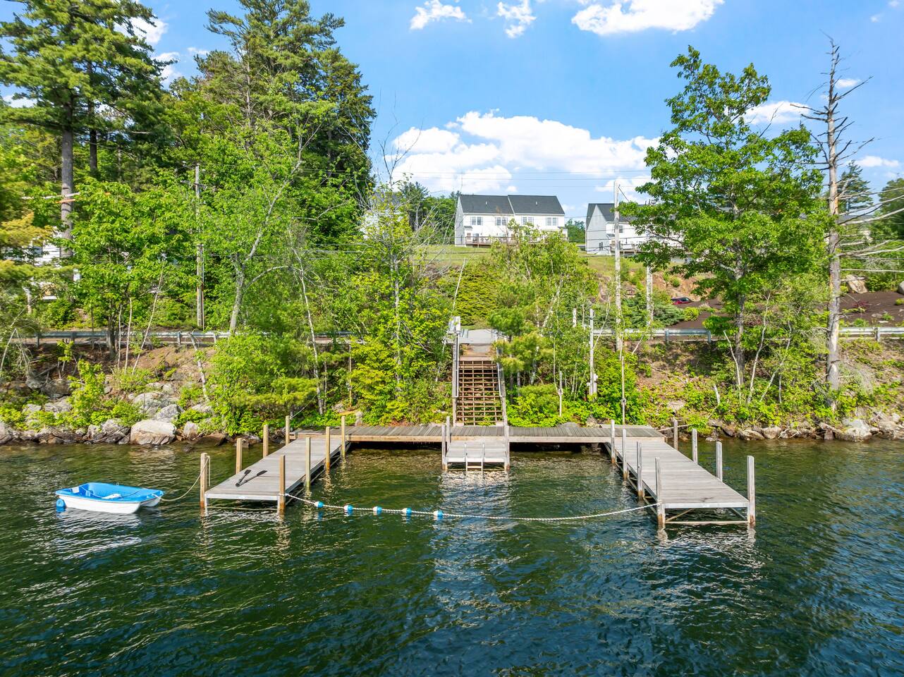 Enjoy the ease of designated parking and keyless entry for a smooth arrival. Step into a spacious mudroom, then descend just 8 steps to enter the warm and inviting main living area. The beautifully renovated kitchen is fully equipped with all the essentials, perfect for preparing meals during your stay. Gather around the dining table for six to enjoy a cozy meal or game night. Unwind by the elegant stone-faced electric fireplace, or step out onto your private deck to soak in the peaceful, scenic views of Paugus Bay. The main floor also features a unique half bath with luxurious heated flooring a perfect touch for those chilly mornings. Upstairs, you'll find a guest bedroom with a bunk bed that sleeps three, conveniently located next to a full bathroom. The master bedroom offers a comfortable queen-size bed, an attached full bathroom, and views of Paugus Bay. Both bedrooms are outfitted with smart TVs, high-quality linens, ample storage, and thoughtful touches to make your stay extra comfortable. Enjoy convenient lake access with a day dock and swimming area perfect for picking up and dropping off your family after launching your boat at the nearby public boat ramp. While overnight or daily docking isn’t available, there’s ample space on the property to park your trailer, making it easy to launch and retrieve your boat each day. The property is a family friendly for all ages with a built in baby gate on the main level so everyone can enjoy the main living space. Please note: Personal care items are not provided. However, a pack and play and high chair are available upon request to accommodate families. Whether you're hitting the slopes, enjoying lake activities, attending a concert, or simply unwinding by the water, Lake Escape is your home away from home in every season. Meals and Rentals License #105468