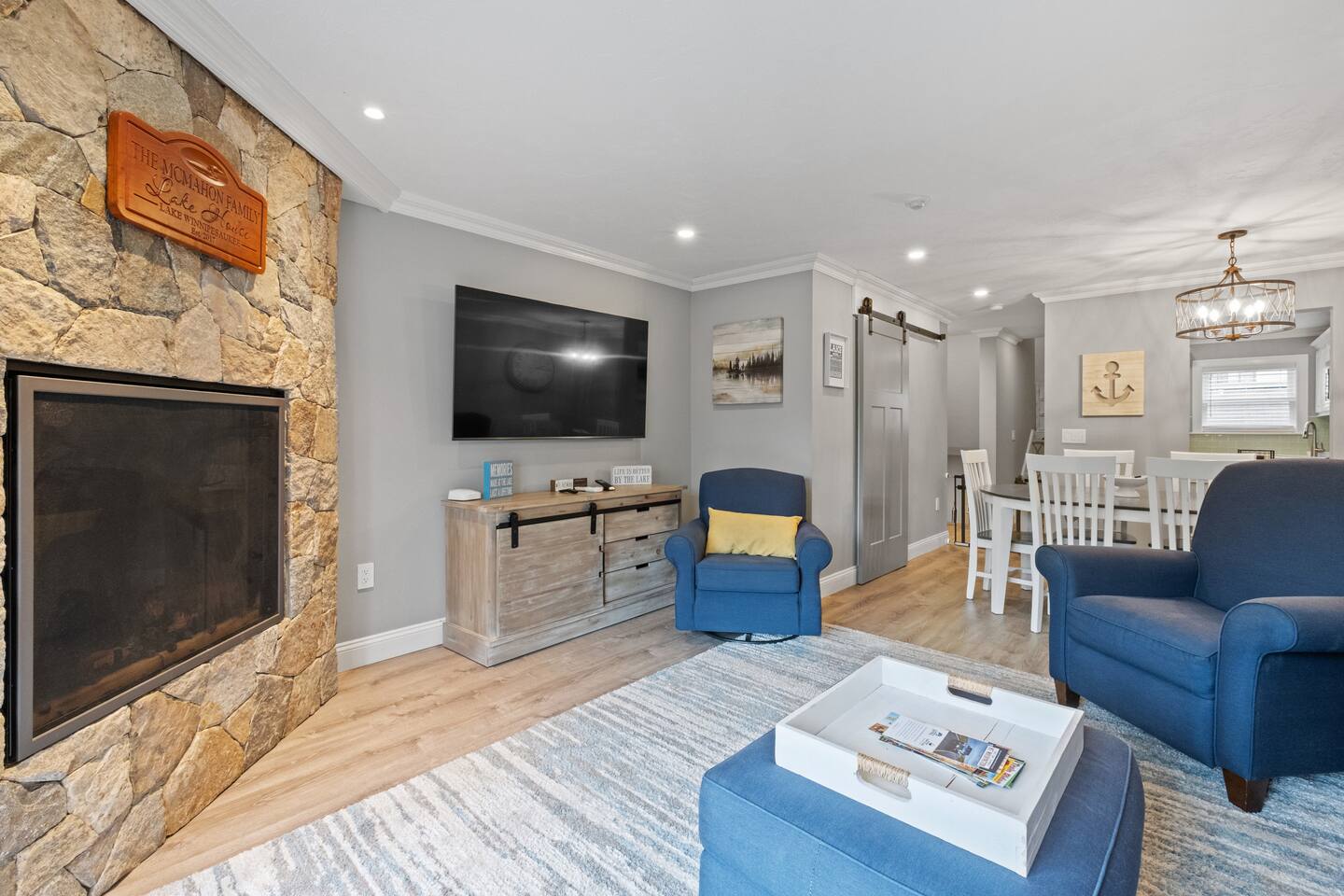 Four Season Lake Escape is a charming two-bedroom, two and a half-bathroom condo offering views of Lake Winnipesaukee’s one and only Paugus Bay. True to its name, this cozy retreat is the ideal four-season escape in the heart of the Lakes Region. Conveniently located, you're just minutes from top attractions like Gunstock Mountain, Weirs Beach, the Bank of New Hampshire Pavilion, popular wedding venues, and so much more! Lake access with a swimming area and day dock available for pick up/drop
