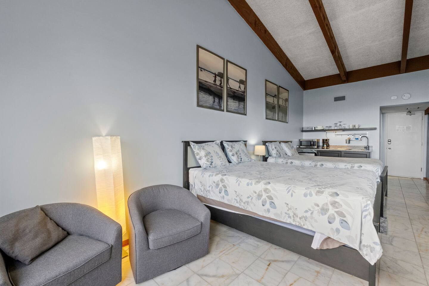 Welcome to The Lake View Nook, the perfect family vacation spot by the lake! Whether you're in town for a family event or just need a little extra space to relax, The Nook offers the ideal blend of comfort and convenience. This cozy condo features two queen beds, a well-equipped kitchenette, and beautiful views of the lake. Everything you need to unwind and feel at home. With its warm atmosphere and prime location, The Nook is your go-to retreat for making memories with loved ones.