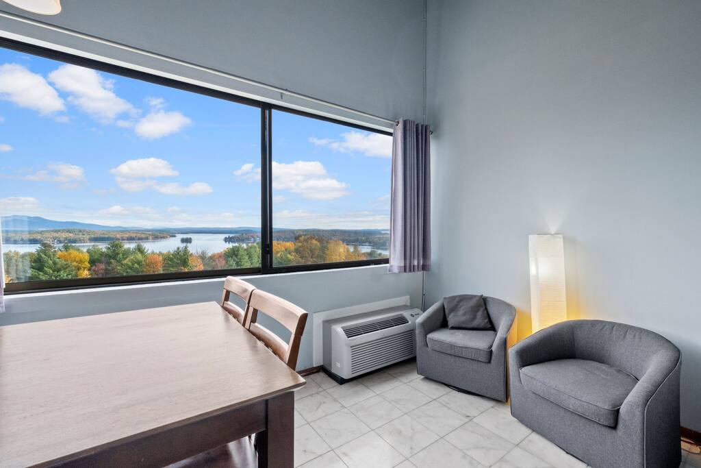 Welcome to The Lake View Nook, your home away from home nestled just outside the heart of Weirs Beach. This inviting condo offers everything you need for a relaxing and memorable stay all within a cozy, thoughtfully designed space that blends comfort and convenience. The Nook features a kitchenette equipped with a mini refrigerator, microwave and coffee maker. Linens and towels are provided for your stay, please bring your own personal toiletries such as body wash, shampoo, and conditioner. Wake up to beautiful lake views, enjoy your morning coffee with views of Lake Winnipesaukee, or unwind after a long day. Ideally situated in Laconia, with easy access to Gilford and Meredith, The Nook is the perfect home base for attending local events, discovering charming lakeside towns, hitting the slopes, or simply soaking in the peaceful mountain and water views with your loved ones. Whether you’re visiting for a family gathering, a weekend getaway, or just need some extra space, The Lake View Nook combines a welcoming atmosphere with modern comfort, the perfect place to relax and recharge. Washer/Dryer: On-site and coin-operated. A change machine and vending area are conveniently located nearby for easy access. Meals and Rentals License #105468