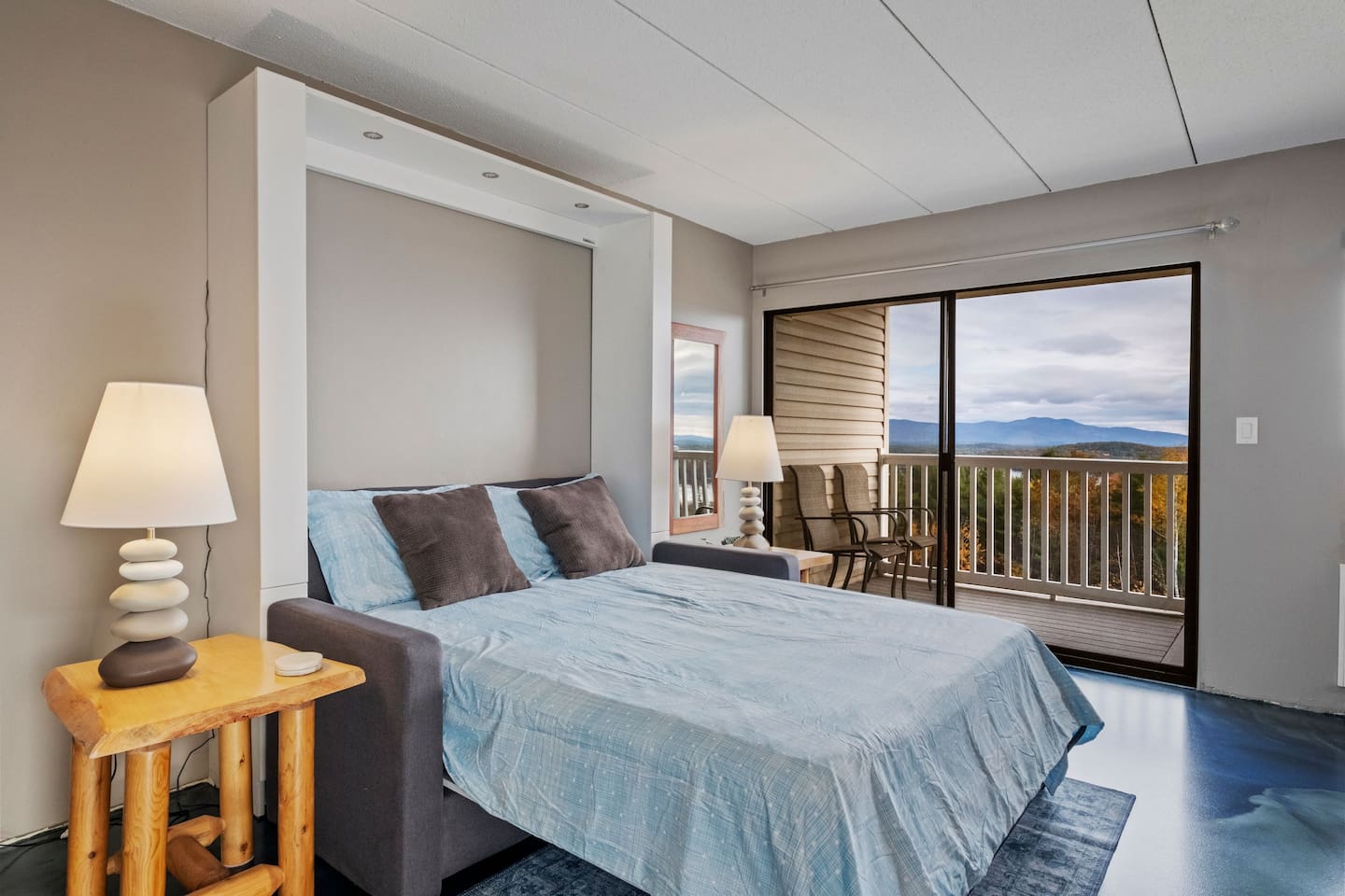 Welcome to Retro Lake Escape, your home away from home nestled just outside the heart of Weirs Beach. This unique condo blends retro flair with modern comfort, offering everything you need for a relaxing and memorable stay all within a stylish, efficient space designed for ease and enjoyment. Step into the fully equipped kitchen, complete with all the essentials to prepare your favorite meals. An easy to assemble and dissemble Murphy bed is in the main living space. ( we provide a step by step for guest ease in guest book located in the condo unit). Linens and towels are provided for your convenience just bring your personal toiletries such as body wash, shampoo, and conditioner. Wake up to breathtaking views of Lake Winnipesaukee, enjoy your morning coffee on the balcony on a nice crisp morning over looking the water and mountain views, or unwind by the cozy fireplace after a day of exploring. Perfectly situated in Laconia, close to Gilford and Meredith, this charming getaway is the ideal home base for attending local events, discovering lakeside towns, skiing in winter, or simply soaking in the serenity of the mountains and water. Whether you’re here for business, pleasure, or a little of both, Retro Lake Escape combines small space living with modern convenience offering the perfect balance of relaxation and refinement. Additional Amenities: Washer/Dryer onsite (coin-operated) Convenient coin machine and vending area located nearby for easy access Meals and Rentals License #105468