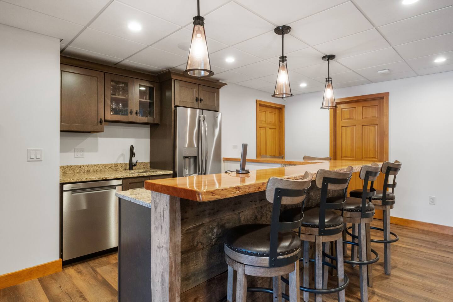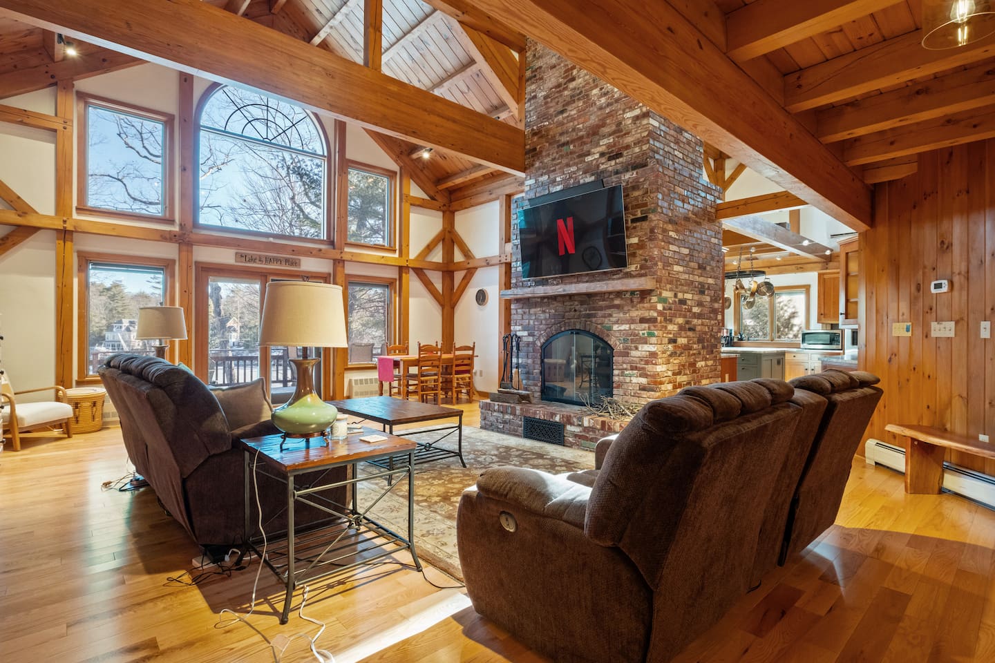 The Lodge is a four-season, family-friendly lakefront retreat on beautiful Lake Winnipesaukee. Thoughtfully designed with comfort and convenience in mind, the home offers a peaceful setting where families can relax, reconnect, and enjoy time together. This spacious three-level home features five bedrooms and three-and-a-half bathrooms, with lake views from every level. Ideal for multiple families enjoying a weeklong lake vacation, the Lodge offers a large chef’s kitchen perfect for preparing your favorite meals, along with ample dining space so everyone can gather and dine together. A large back deck stretches the length of the home and overlooks the lake, providing the perfect place to relax and take in the scenery. A fairly large grassy area in the backyard for a friendly game of racket ball or just relaxing. Designed for guests of all ages, the property includes a walk-out beach and private dock, making it easy to enjoy the lake from morning to night. The large lower level offers an entertainment area ideal for both children and adults, featuring a pool table that converts into a ping-pong table, a spacious couch, and a TV perfect for family movie nights. Well-equipped for family stays and set in a quiet, scenic location, The Lodge is the perfect place to create lasting memories while enjoying everything the lake has to offer, season after season. Make The Lodge your yearly family vacation destination. Meals and Rentals License #105468