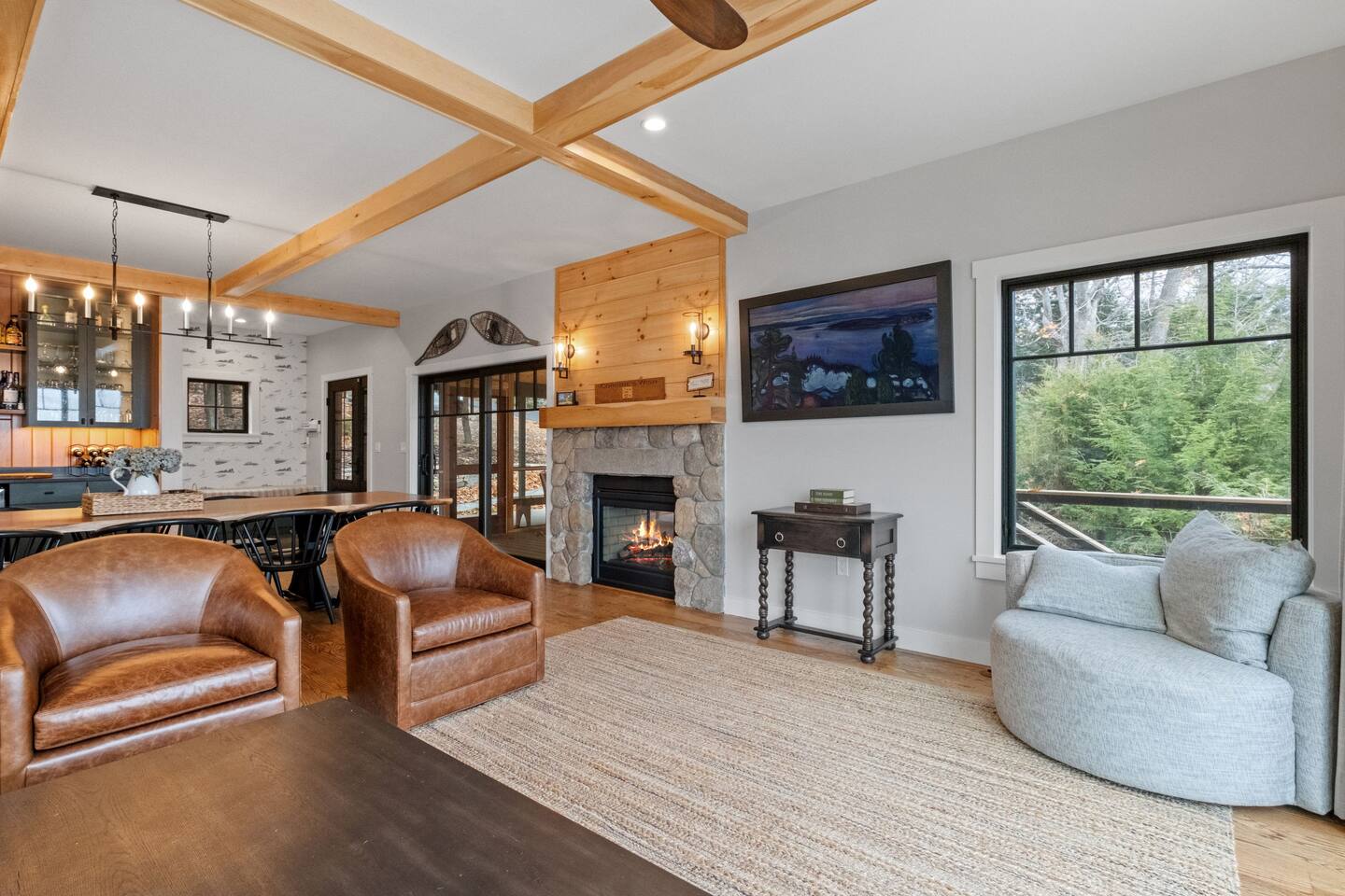 This spacious 4 bedroom, 4 bathroom home offers everything you need to enjoy true lake life comfort. Its open floor plan makes it the ideal retreat for gathering with family and unwinding after a long day on the water or hitting the slopes. Whether you're visiting in the summer or winter, you’ll love having the lake right in your backyard, complete with a private dock and a beach area perfect for lounging. With Gunstock just 5 minutes away, early bird ski sessions are always within easy reach.